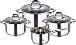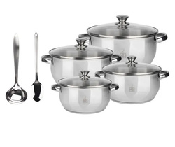 RENBERG Silver 10 elementów Zestaw 4 Garnków z Pokrywką + 2 Akcesoria