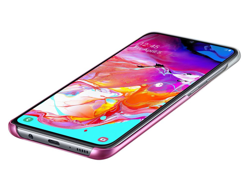 ⭐ Etui Gradation Cover do Galaxy A70 zapewnia dodatkową warstwę ochronną. Jego ultracienka i lekka oprawa wygodnie leży w dłoni i jest na tyle wytrzymała, by zabezpieczyć telefon przed wgnieceniami czy przypadkowymi zadrapaniami.