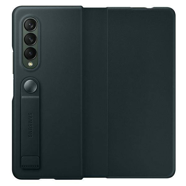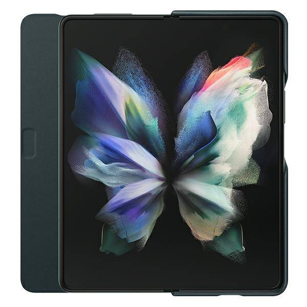 ✨ Etui Samsung Leather Flip Cover Zielony Do Z Fold3 5G Skóra Naturalna