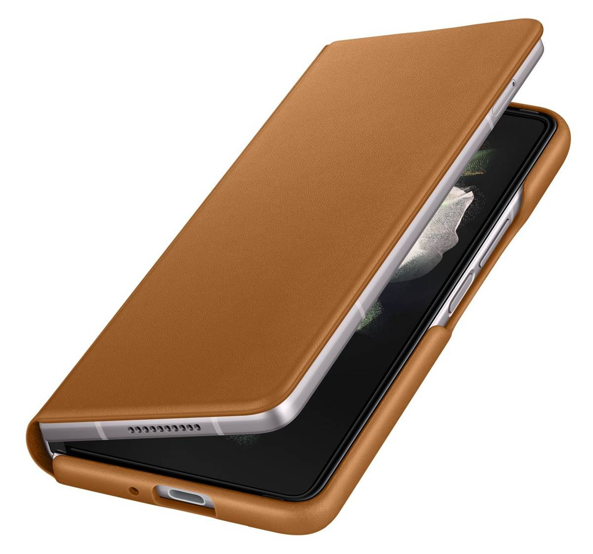 ✨ Etui Z Klapką Samsung Leather Flip Cover Brązowy do Galaxy Z Fold3 5G