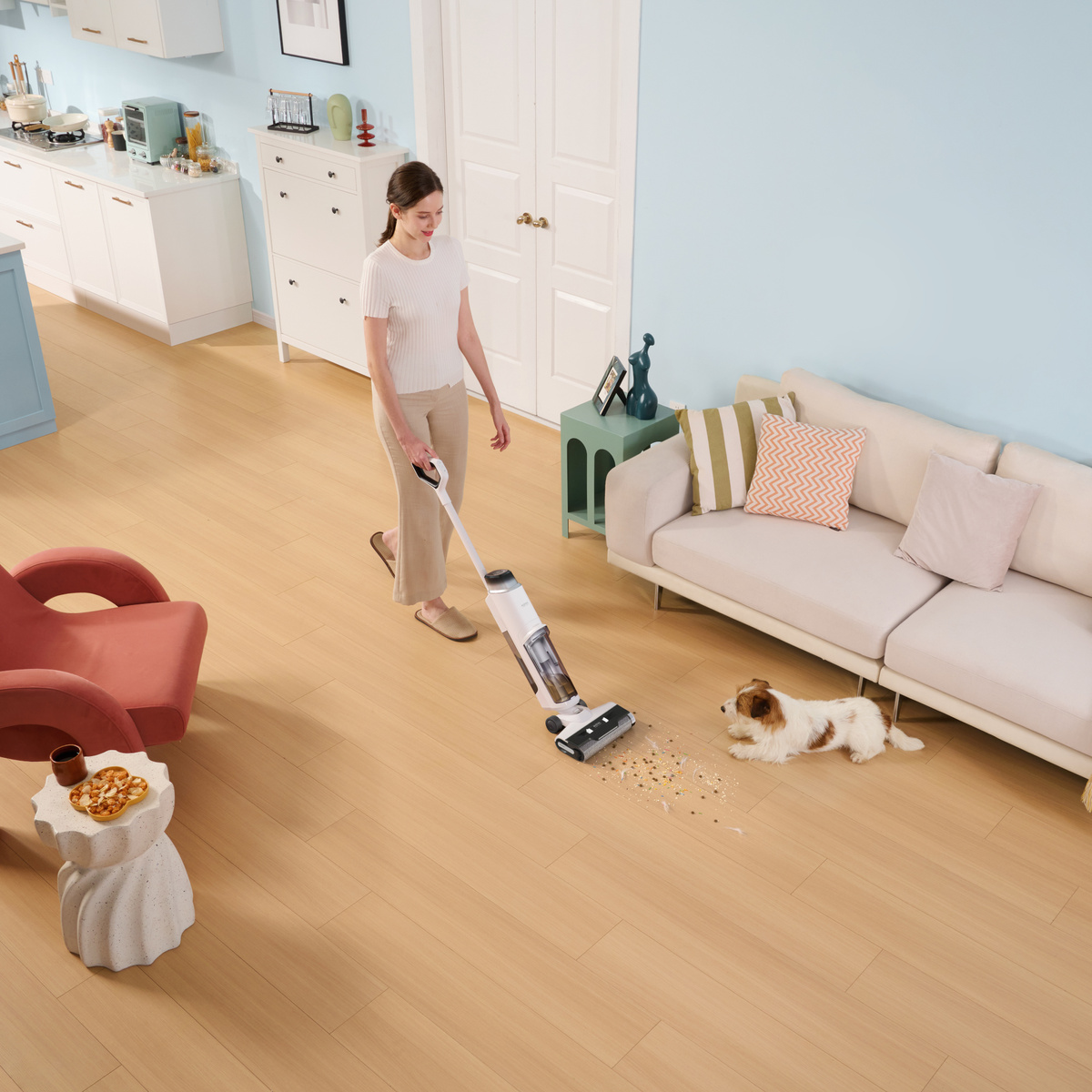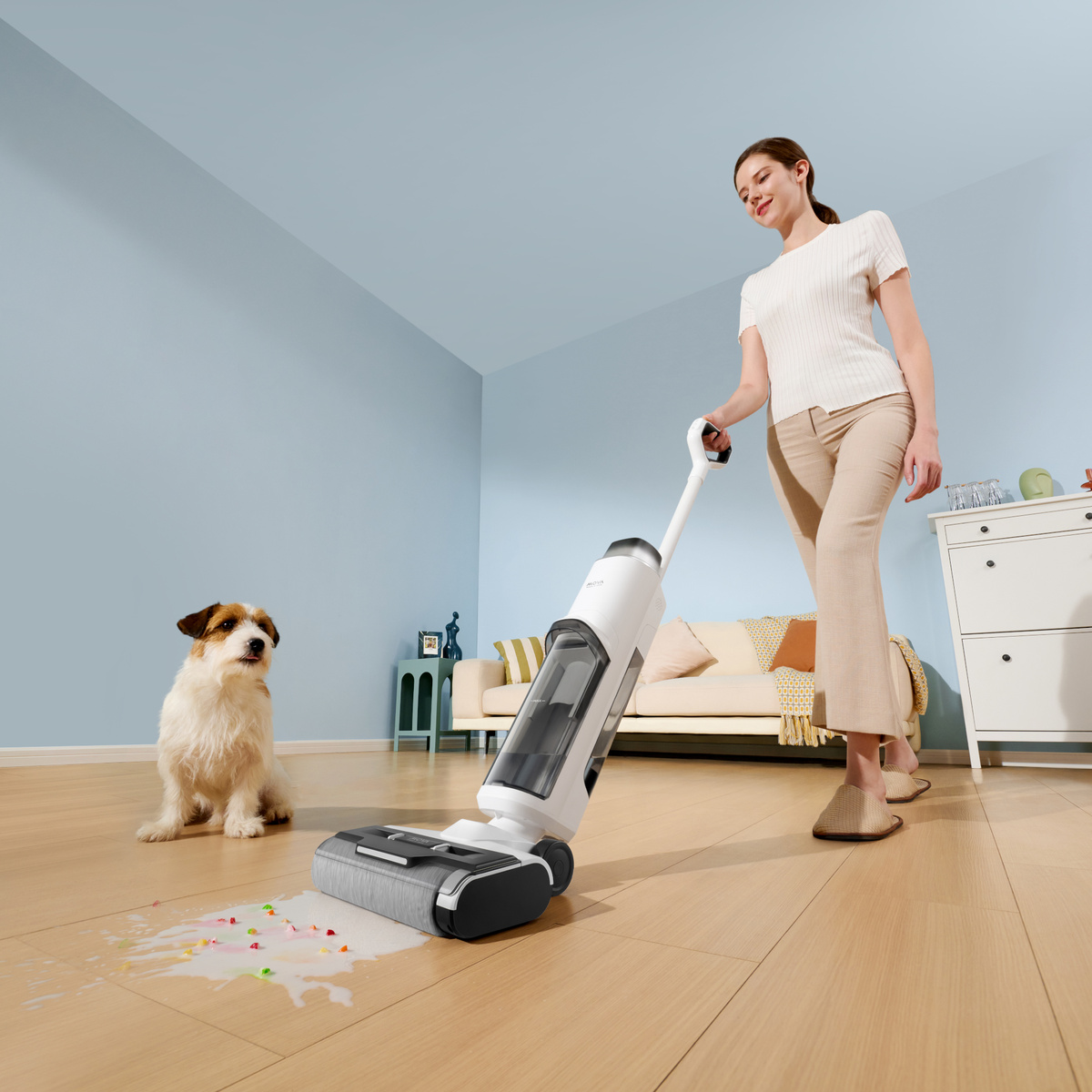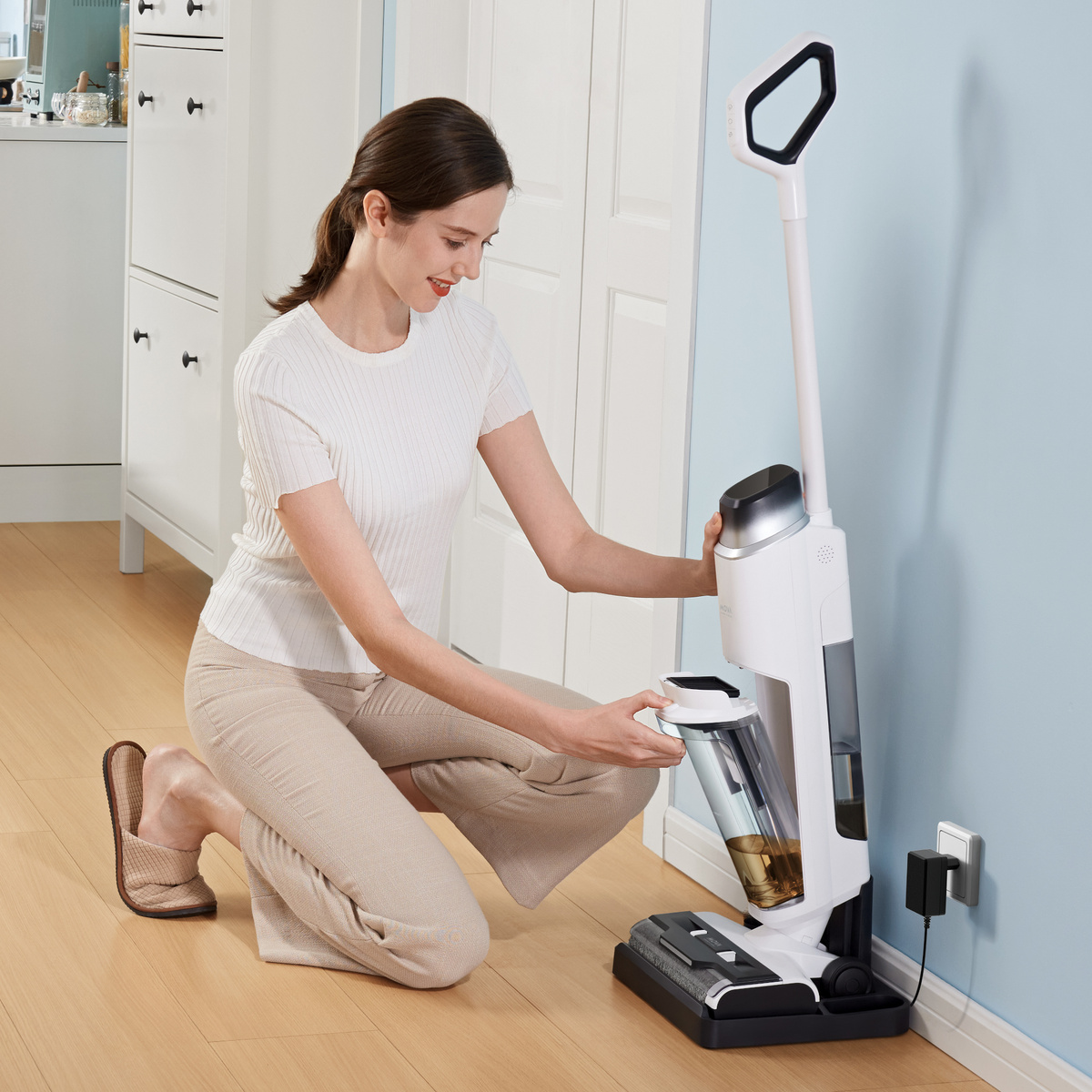 ⭐ Ten samojezdny, lekki odkurzacz (3,8 kg) pozwala usuwać mokre i suche zabrudzenia. Inteligentne wykrywanie brudu automatycznie dostosowuje moc ssania do każdego cyklu i pracując przez nawet 30 min w połączeniu ze zbiornikiem czystej wody 890 ml. Czyszczenie krawędzi jest łatwe dzięki szczotce zbierającej brud głęboko w narożnikach i wzdłuż listew do 6 mm. Dzięki płynnej zwrotności i bezprzewodowej wygodzie czyszczenie podłóg jest teraz niezwykle łatwe.