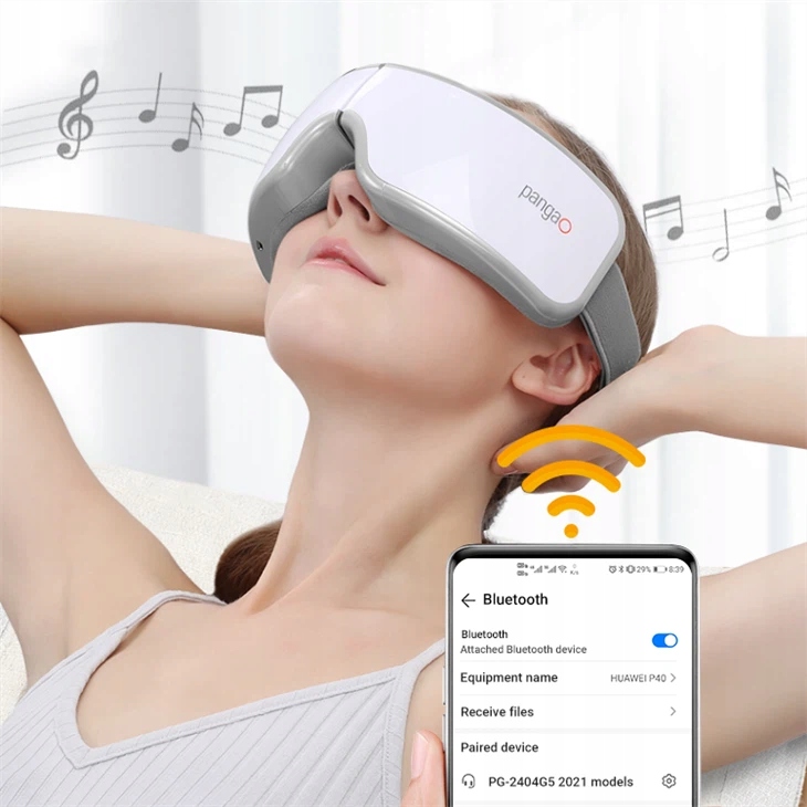 Masażer Oczu i Skroni PG-2404G5 BT Muzyka Kompres Cieplny Wibracje Pangao