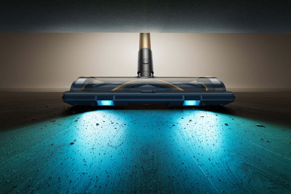 ⭐ Szczotka uniwersalna z oświetleniem jest wyposażona w zaawansowane diody LED emitujące błękitne światło, które eksponuje ukryty kurz i zanieczyszczenia na twardych podłogach bez tworzenia odblasków, co pozwala dokładnie wysprzątać każdy fragment podłogi oraz wnęki i narożniki.