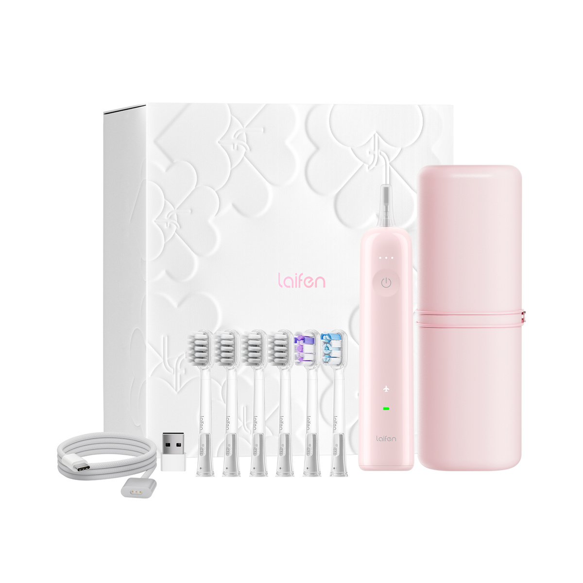 Laifen Szczoteczka do Zębów Soniczna Wave ABS Różowa Głowki 6 szt. Aplikacja Gift Box