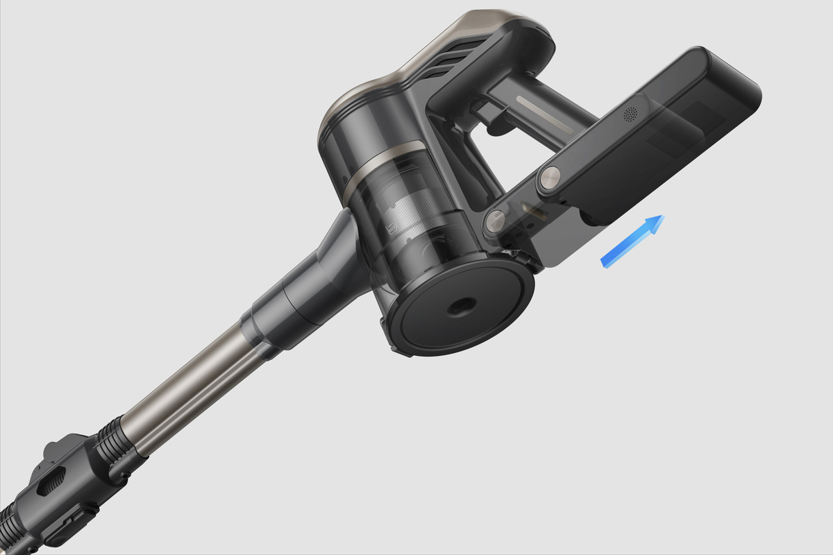⭐ MOVA S2 Detect to synonim elastyczności i wygody, również w kwestii zasilania. Dzięki odłączanej baterii, możesz ładować ją oddzielnie, co jest niezwykle praktyczne, jeśli nie masz gniazdka w pobliżu miejsca przechowywania odkurzacza.