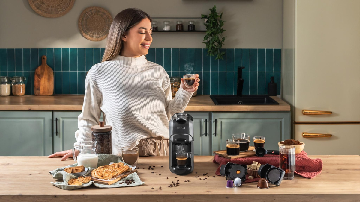 ✅ Ekspres 3w1 – obsługuje kawę mieloną, kapsułki Dolce Gusto i Nespresso.
