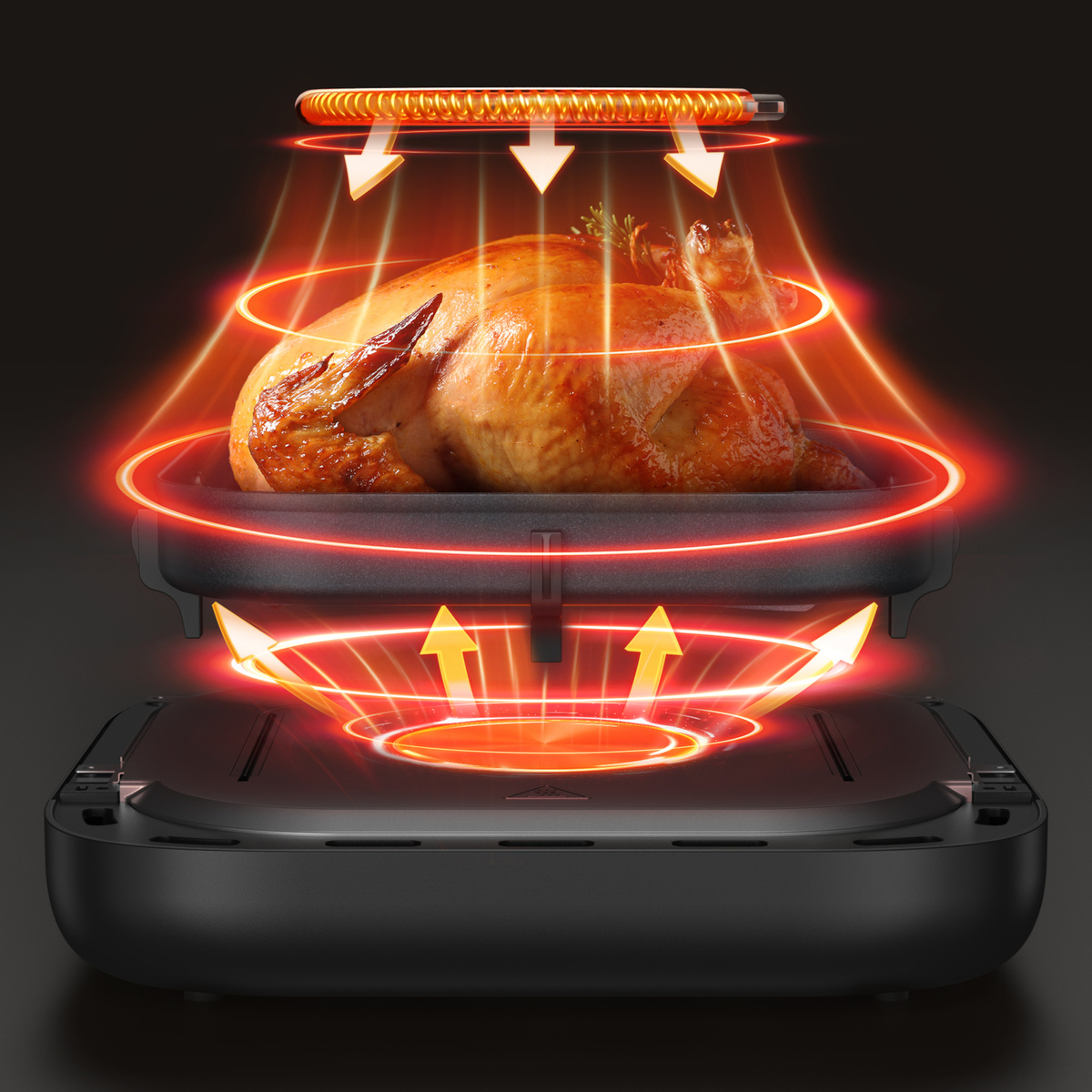 ⭐ AeroChef integruje system cyrkulacji gorącego powietrza 360° Hot Poly-AirTM z falistą konstrukcją patelni grillowej, aby zoptymalizować dynamikę przepływu powietrza, co skutkuje wydajnym gotowaniem, lepszym zachowaniem soczystości potraw, a potrawa szybciej staje się chrupka.