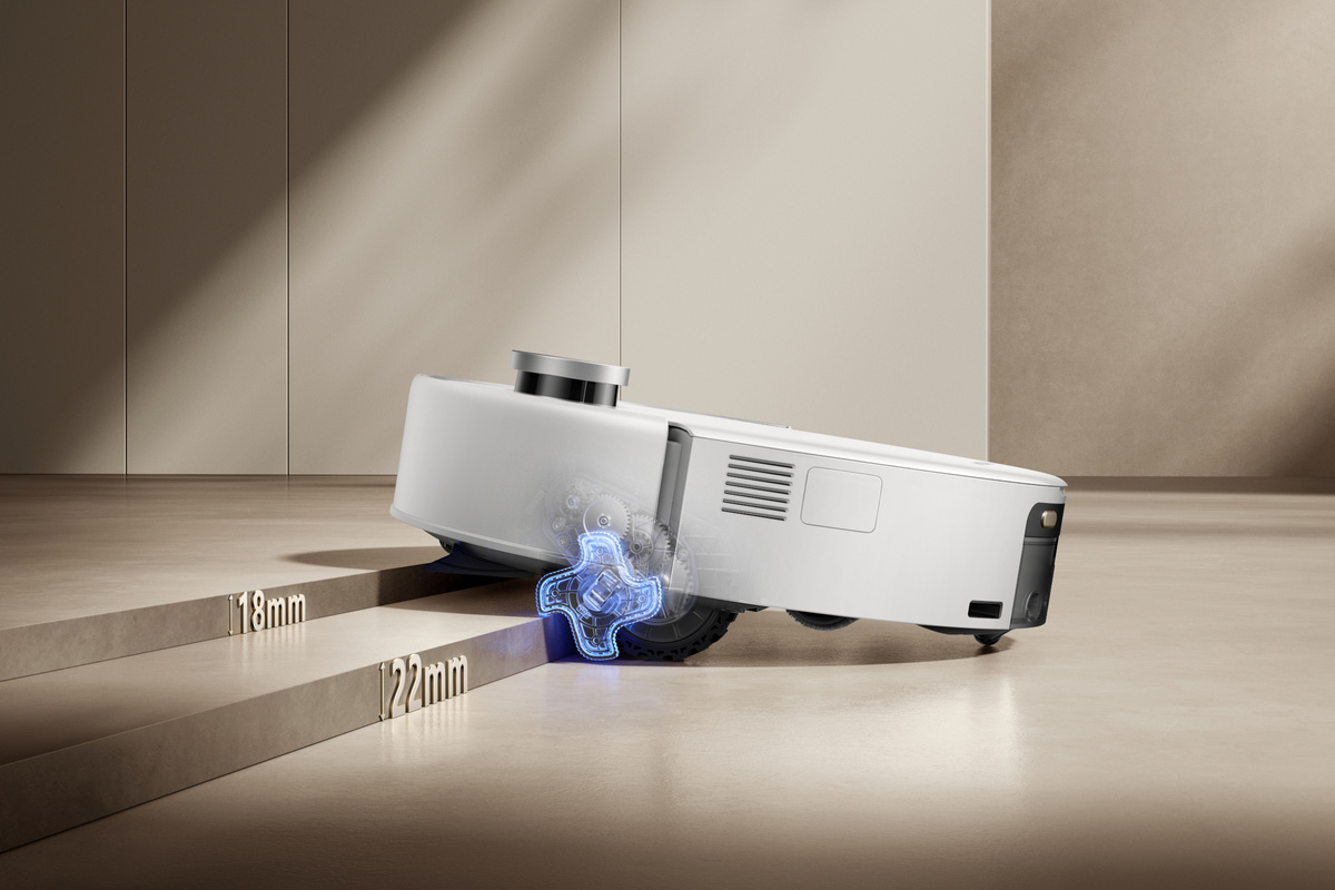 ⭐ Zapomnij o robotach, które utykają na progach czy dywanach. MOVA Z60 Ultra Roller Complete, z technologią StepMaster 2.0, został zaprojektowany, aby sprostać każdemu wyzwaniu terenowemu. Z łatwością pokonuje progi, prowadnice drzwi, a nawet małe przeszkody o wysokości do 8 cm, co zapewnia ciągłość sprzątania i nieprzerwaną pracę. Robot bez problemu przejeżdża przez nogi mebli w kształcie litery "U" i inne domowe przeszkody. A kiedy napotka dywan typu shaggy, inteligentny podnośnik podwozia AI-Powered LiftPro unosi cały korpus, zapobiegając zablątaniu i szorowaniu, jednocześnie obniżając osłonę, by utrzymać dywan w suchości.