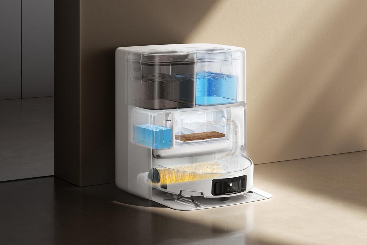 ⭐ MOVA Z60 Ultra Roller Complete oferuje niezwykle intuicyjną kontrolę dzięki asystentowi głosowemu Al MOVAgpt. Wystarczy powiedzieć "Hej, MOVA", aby robot zrealizował Twoje polecenie. Możesz rozpocząć sprzątanie, ustawić idealne ustawienia dla każdego pokoju i dywanu, a MOVA zajmie się całą resztą. Dopełnieniem jest aplikacja MOVAhome, która oferuje spersonalizowane sprzątanie prosto z Twojego telefonu. Funkcja CleanGenius automatycznie wykrywa dywany i zwiększa ssanie, a także celuje w trudne do wyczyszczenia krawędzie, takie jak zasłony i narożniki. Dzięki tej integracji, prawdziwie uwalniasz swoje ręce – wystarczy jedno dotknięcie telefonu, aby robot zmapował, zaplanował i wyczyścił każdy zakątek Twojego domu.