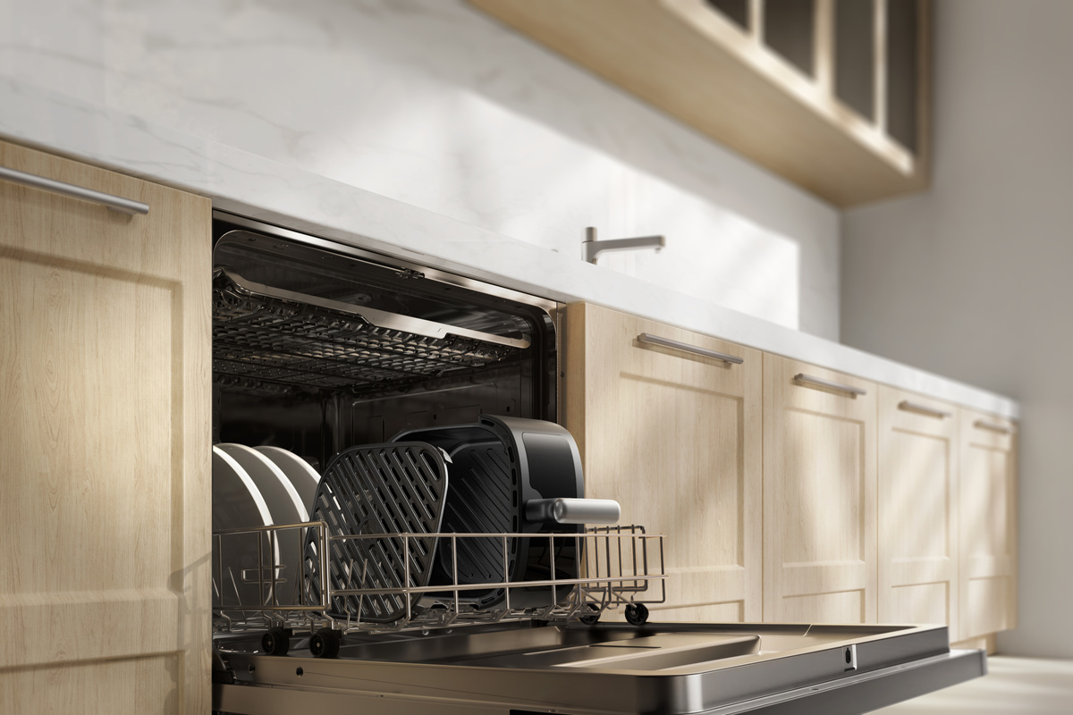 ⭐ Zarówno pojemny kosz, jak i specjalna taca grillowa są w pełni przystosowane do mycia w zmywarce, co jest ogromnym ułatwieniem w codziennym pędzie. Dzięki zastosowaniu nowoczesnej, nieprzywierającej powłoki ceramicznej, resztki przypraw czy tłuszcz nie wgryzają się w powierzchnię, więc możesz zapomnieć o uciążliwym szorowaniu czy namaczaniu elementów przez całą noc. Utrzymanie sterylnej czystości jest banalnie proste i błyskawiczne – po prostu wyjmujesz akcesoria, wrzucasz je do zmywarki i gotowe!