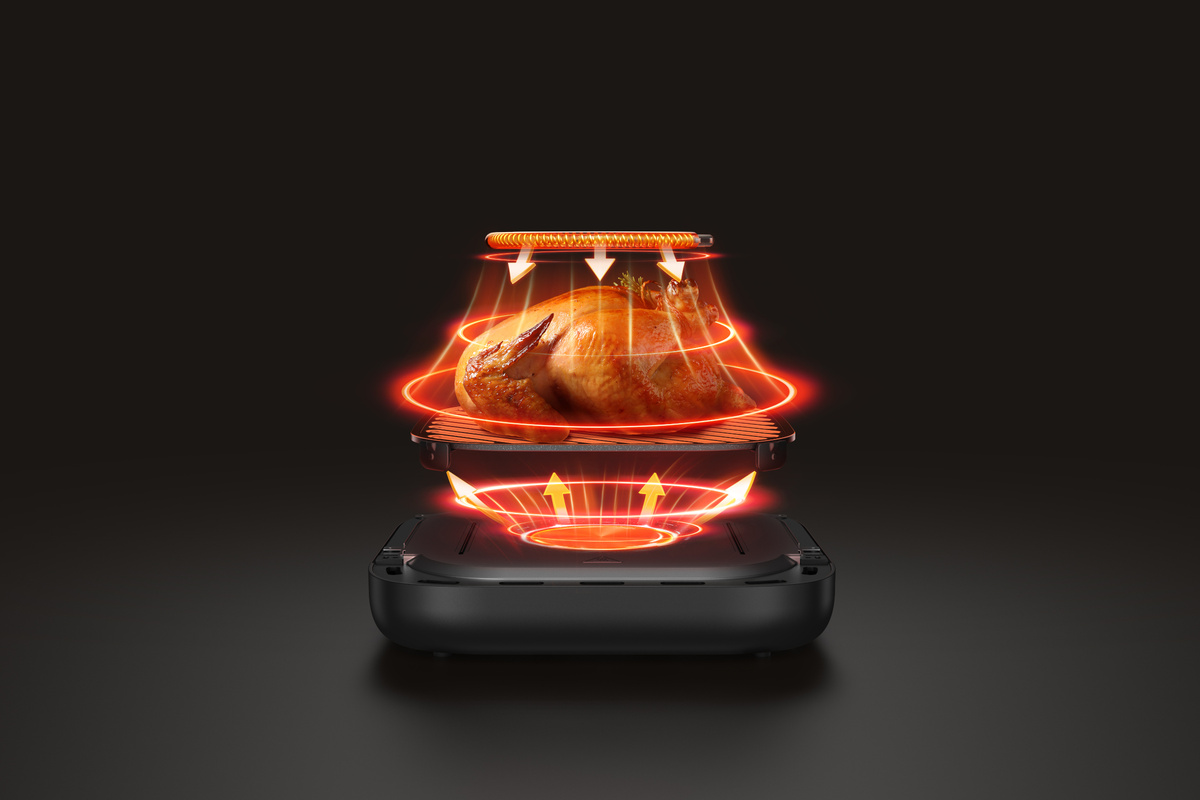 ✅ Podwójny system HeatSync: Grzałki na górze i na dole to gwarancja idealnie chrupiącej skórki z obu stron bez konieczności obracania potraw.