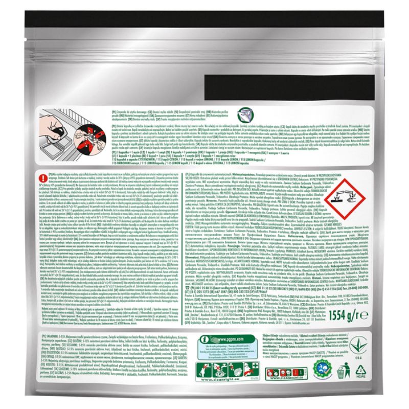 Profesjonalne tabletki do zmywarki Fairy Jar All-In-One Lemon w ekonomicznym opakowaniu 115 szt. to kompleksowe rozwiązanie opracowane specjalnie do codziennego mycia naczyń w profesjonalnej zmywarce. Innowacyjna wzmocniona formuła umożliwia dwa razy szybsze rozpuszczenie się kapsułek, zapewniając usunięcie tłustych zabrudzeń, plam po kawie i herbacie. Tabletki Fairy Jar skutecznie myją zaschnięty tłuszcz, chronią też srebro i nadają blask metalom, zapewniając olśniewający wygląd sztućców i akcesoriów ze stali nierdzewnej. Kapsułki posiadają system ochrony szkła i srebra, nie niszczą mytych naczyń. Testowane i rekomendowane przez Whirlpool do użytku profesjonalnego.
